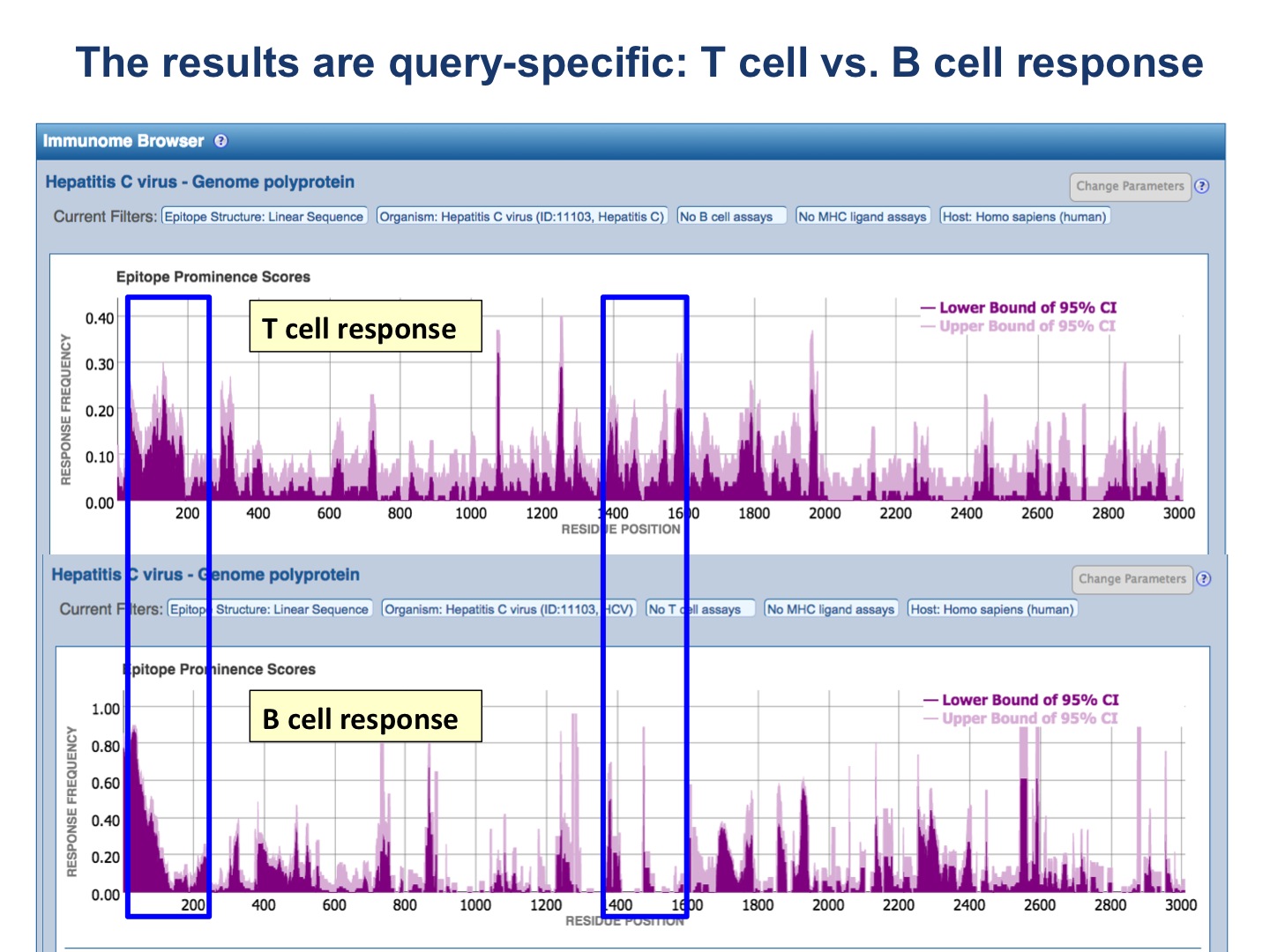 Immunome Browser provide a summarized data by reference antigens; and the main reasons for doing that are the following: (i) epitopes reported in IEDB were identified for different strains and protein isoforms – mapping to the reference protein allows to visualize and study such epitopes as they would have the same antigen; (2) different mutant variants of the same epitope were tested and reported; and (3) immune response varies among studies and assays due to heterogeneity of samples and complexity of immune response.